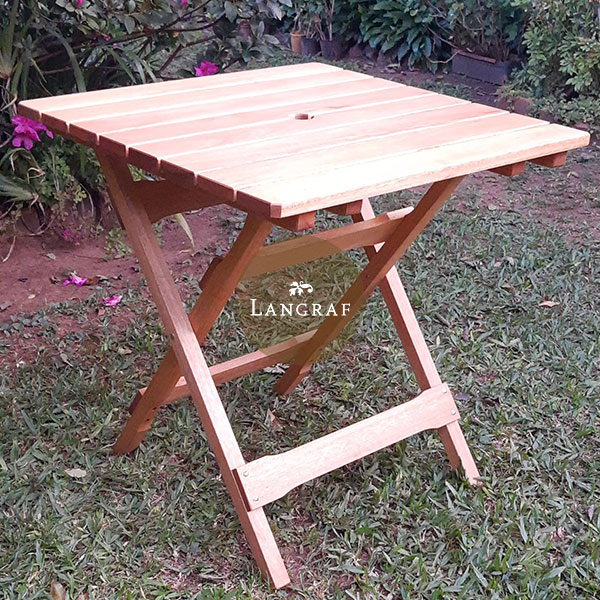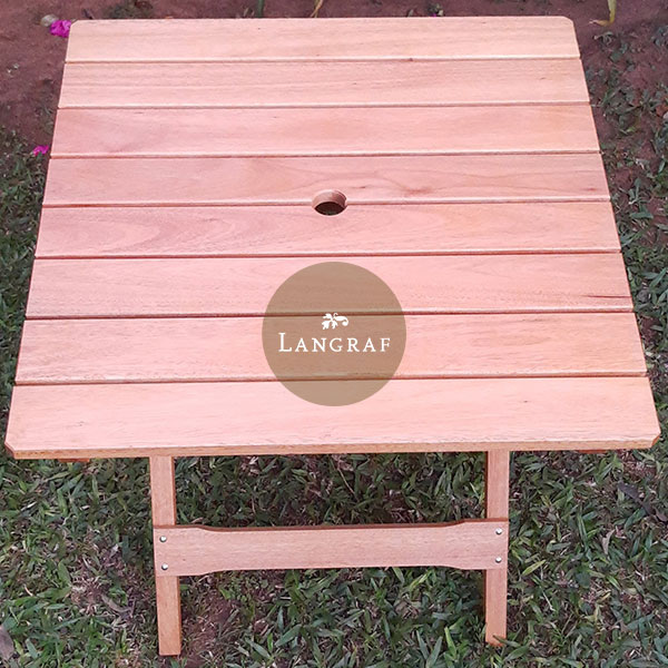Nuestra Mesa Garden plegable, está realizada en madera de Eucalipto y sus delicados detalles de terminación incluyen encastres perfectos y herrajes, tornillos y remaches revestidos en zinc y bicromatizados para evitar el proceso de oxidación.