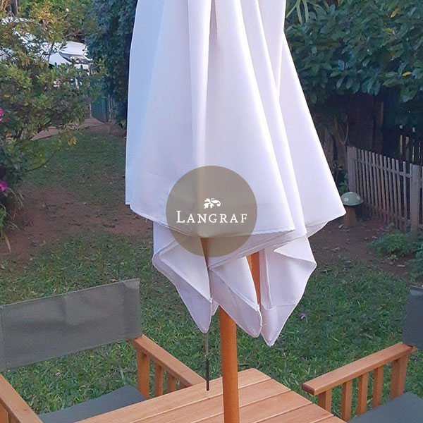 Nuestras Sombrillas, está realizada en madera de Eucalipto y sus delicados detalles de terminación incluyen encastres perfectos y herrajes, tornillos y remaches revestidos en zinc y bicromatizados para evitar el proceso de oxidación.